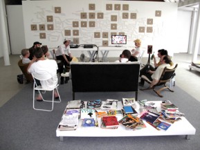 At regular intervals, during the exhibition, guests are being invited to talk about and to listen to music together, f.e. Wiebke Colmorgen, David Donohue, Jochen Bonz, Antonio Narvaez, Thomas Meinecke, Justvon Ahlefeld, Pinky Rose. These nights turn into often long and intimate conversations about the individualsocio-cultural influences through music, which are being aired later in a radio broadcast. The exhibition catalog is a record made by SEX, ‚can´t find no sex in the record shop‘, which is accompanied by a text by JochenBonz.
