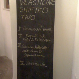 Fortsetzung der Performanceserie ‚Swinging Plasticine‘ zusammen mit dem Künstler Michael Fesca. Michael Fesca hat während der Ausstellungsdauer von ‚Ready for Fatality‘ in der Galerie ‚Note On‘ ein 14-sätziges Tafelgeschirr aus Plastilin hergestellt. Gegen Ende der Ausstellung findet inmitten der ausgestellten Werke ein ‚Fatality Dinner‘ in Kooperation mit dilettantin produktionsbüro statt, das in Referenz zum Buch ‚No ART Around‘ steht. Eine exklusive Runde von vierzehn Gästen kann sich vorab anmelden. Der parallele Fertigungsprozeß von Kochen und Plastilin-Geschirr bestimmt die Dauer der Performance.